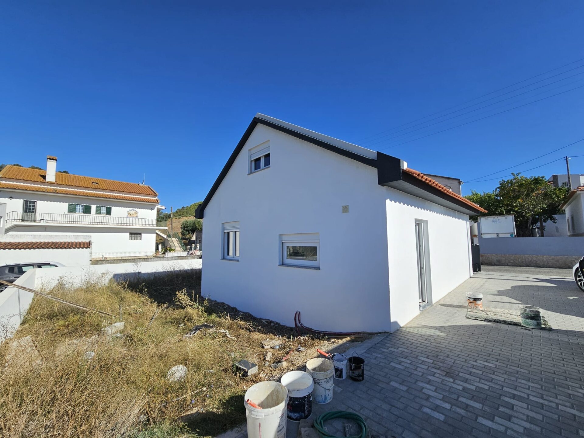 A semi-detached house with facades finished in coarse sand plaster, lacking adequate thermal insulation and subject to significant temperature variations. The 0.5 mm B-THERMIQ® Outside solution was applied directly over the existing finish, with no need to remove or alter the texture. The reflective and emissive layer ensured the thermal reinforcement of the building envelope, improving interior comfort and reducing energy consumption while preserving the original appearance of the sand plaster finish.